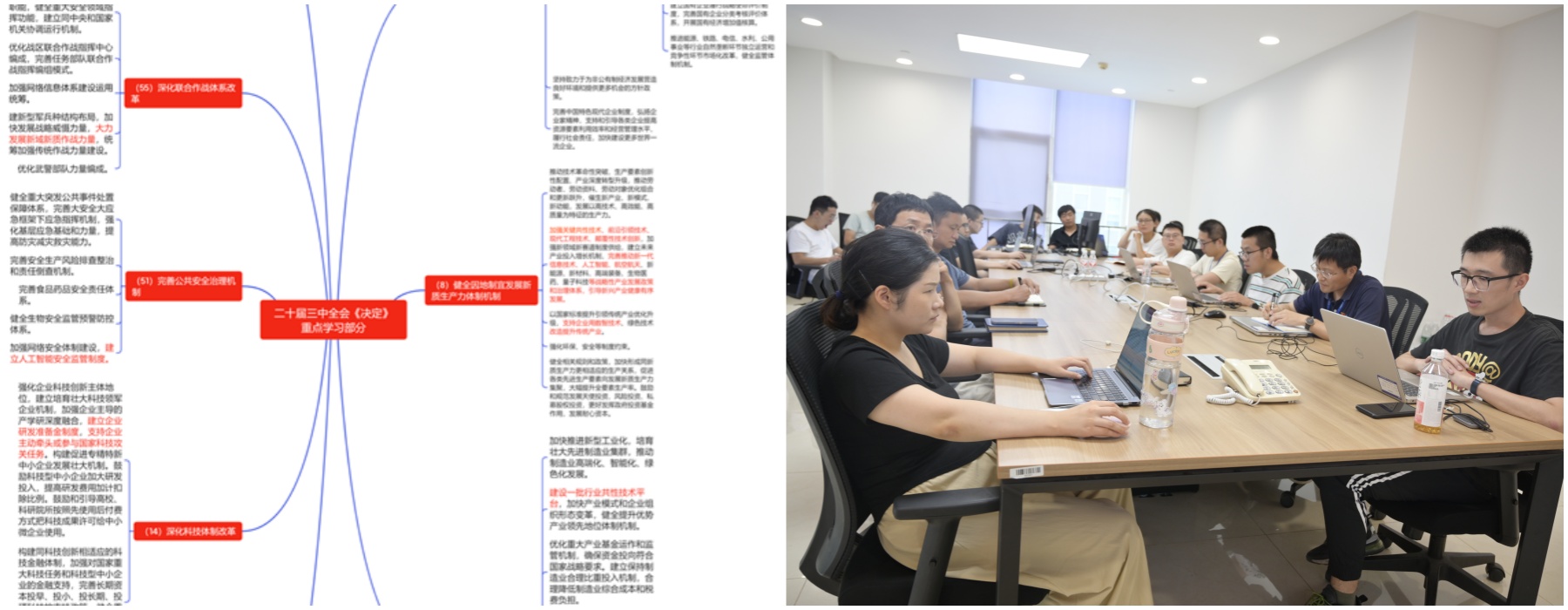 第十黨支部堅持學以致用、學用結(jié)合,用全會精神指導(dǎo)公司改革發(fā)展實踐,以實際行動把全會精神落到實處。支部書記逐章逐條認真研讀《中共中央關(guān)于進一步全面深化改革、推進中國式現(xiàn)代化的決定》全文,結(jié)合學習理解,梳理與公司改革發(fā)展和業(yè)務(wù)拓展緊密相關(guān)章節(jié),增加關(guān)鍵點標注和注解,摘編形成8700余字的“強相關(guān)”內(nèi)容,組織支部全體黨員認真學習,確保全會精神入腦入心入行,同時還要求做好理論學習與工作推進兩手抓兩促進,確保學習成果通過實干取得實實在在的成效。學習完畢后,黨員同志們圍繞文件精神,結(jié)合各自的本職工作,進行了深入的討論交流,進一步統(tǒng)一思想、凝聚共識,將學習成果轉(zhuǎn)化為推動工作的強大動力。