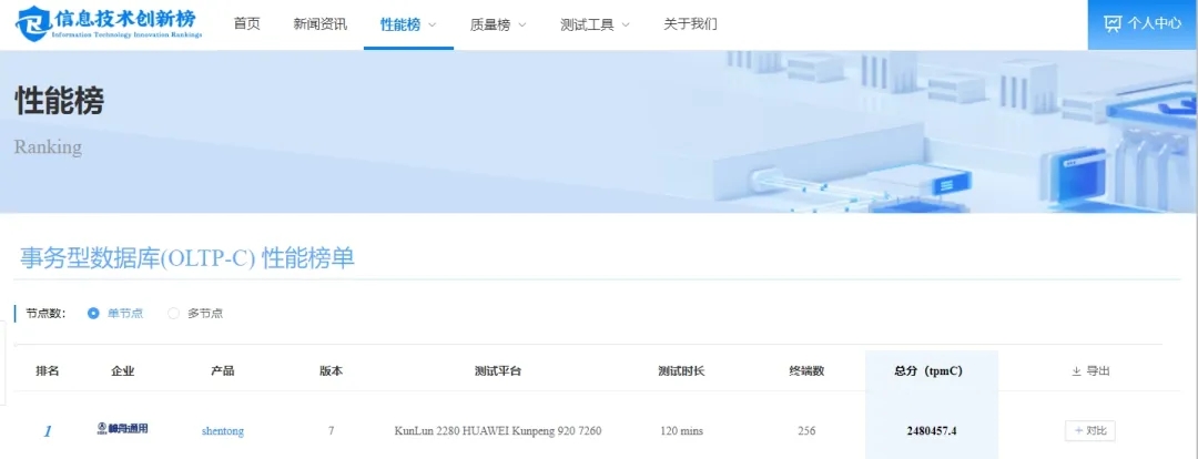 神通數(shù)據(jù)庫登頂“信息技術(shù)創(chuàng)新榜”