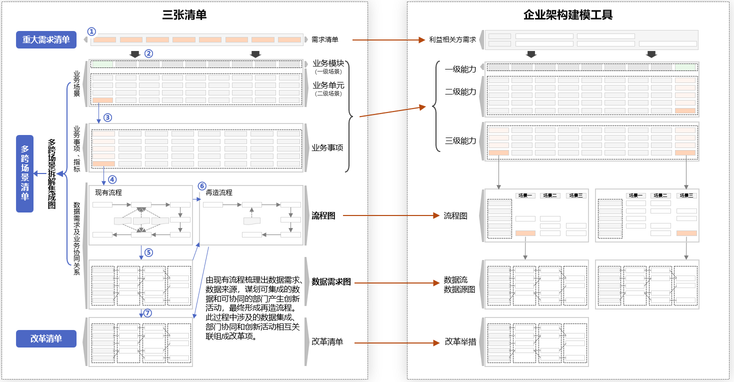 三、企業(yè)架構(gòu)建模與“三張清單”方法的對應(yīng)關(guān)系